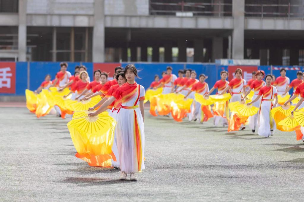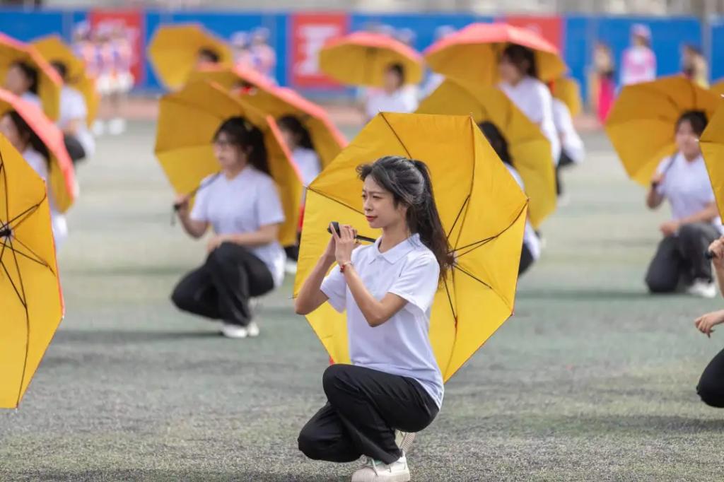 团体操《聚青春之火,燃时代之光》运用双面伞进行各种变换,表现开元学子“新青年、正青春”的精神风貌,鼓励广大学子奋勇向前争做自信的时代追光者。
