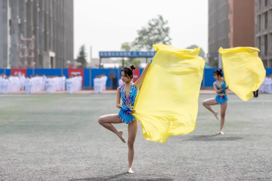 校艺术体操队带来的艺术纱巾操表演,是一项女子特有的艺术性极强的体育运动。全队团结一心,多次在全国大学生艺术体操锦标赛获得大奖。
