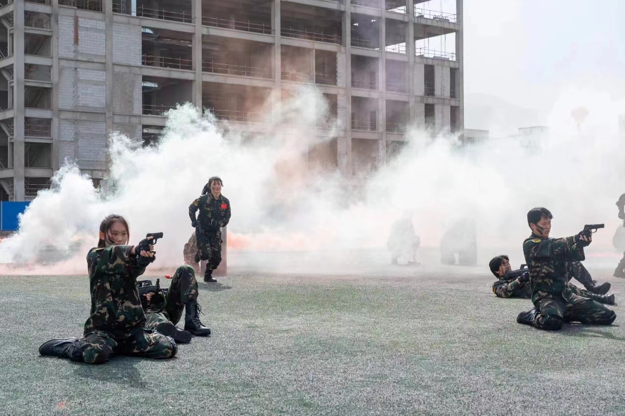 校武术队步伐稳健,身姿矫健,刚柔并济之力,展现中华武术的博大精深。
