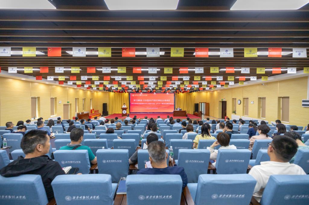 为深入学习习近平总书记关于党纪学习教育的重要讲话精神,扎实推进党纪学习教育,4月28日下午,学校召开党委理论学习中心组扩大会,特邀陕西省委党校(陕西行政学院)党建教研部段鹏飞教授解读新修订的《中国共产党纪律处分条例》。校党委理论学习中心组成员、全体处科级干部、各级党组织书记参加会议。会议由党委书记、校党纪学习教育领导小组组长阎东明主持。