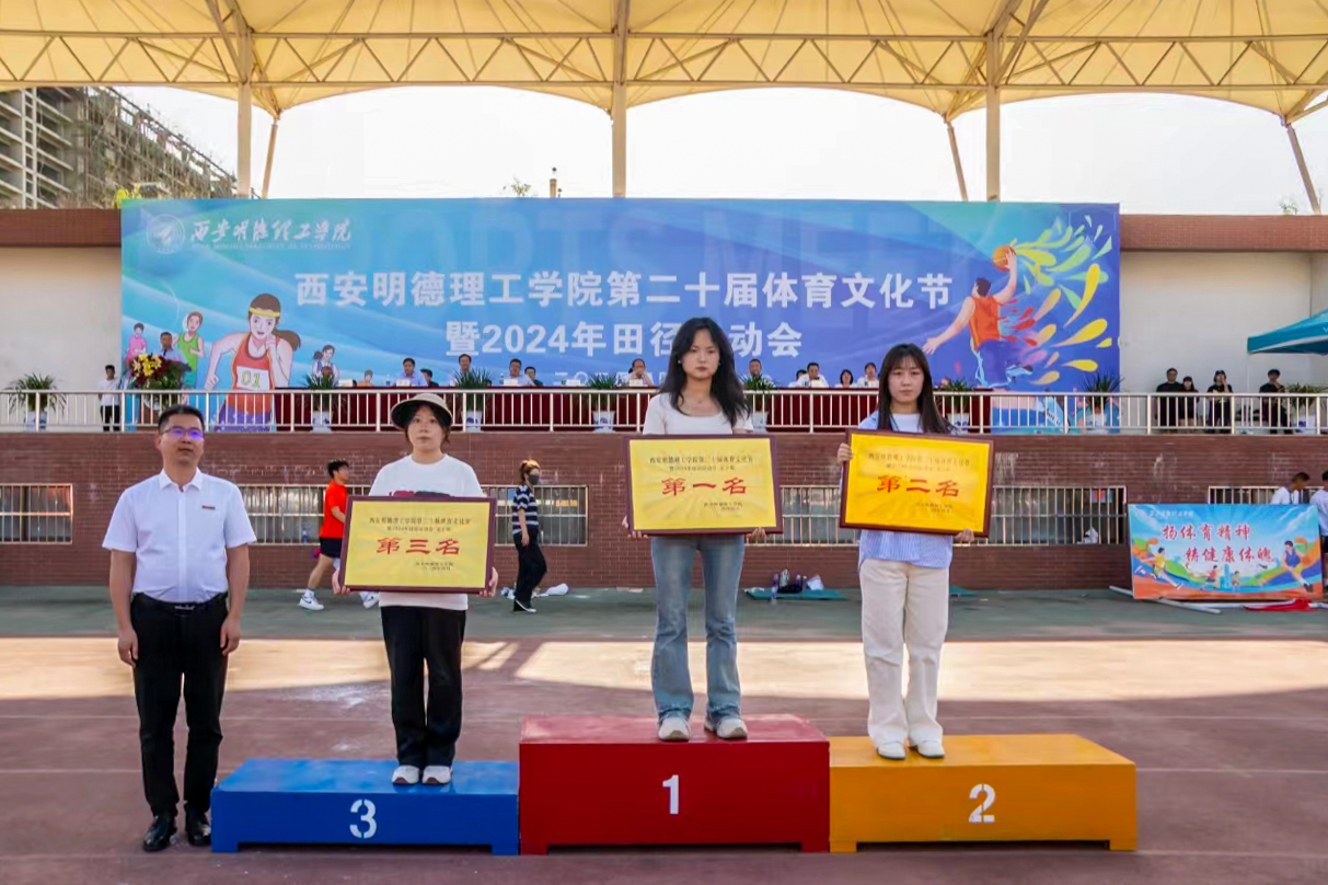 副校长刘星为获得女子团体第一名的信息工程学院、第二名的高等职业技术学院、第三名的经济与管理学院颁奖。