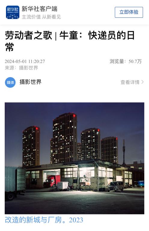 影视摄影与制作专业教师⽜童摄影作品《快递员的⽇常》在《中国摄影》2024年5期(C刊)刊发,五⼀劳动节之际,新华社五⼀专题报道“劳动者之歌”板块予以载。