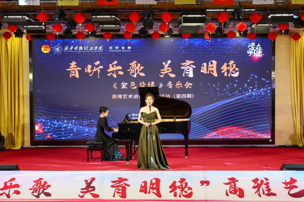 为提升师生的艺术修养,营造良好的校园文化氛围,6月5日,由校团委主办,艺术与设计学院团委承办的高雅艺术进校园活动“金色旋律”音乐会在建德楼203成功举办。来自陕西省音乐家协会、陕西省交响乐团、西安音乐学院等14位艺术家们为学校师生带来了一场震撼心灵的音乐盛宴。学校党委副书记、副校长刘星、副校长陈鹏与400余名师生观看了音乐会。