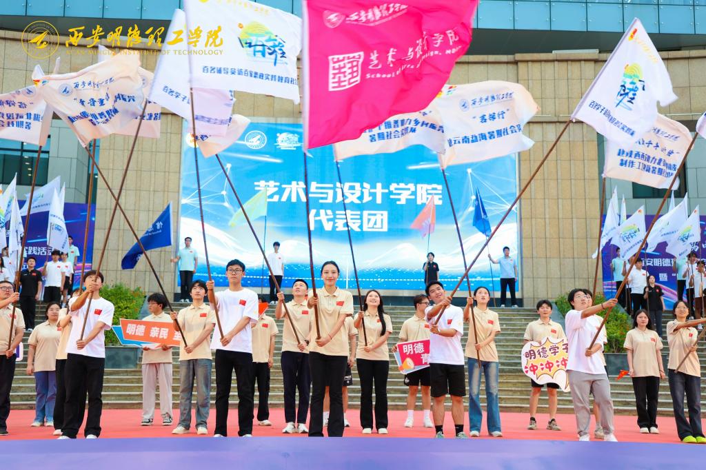 出征仪式团队展示环节令人印象深刻。各学院社会实践分团依次上台展示,他们精神饱满、激情洋溢,充分展现了明德学子积极投身社会实践、深入基层一线的决心和担当。