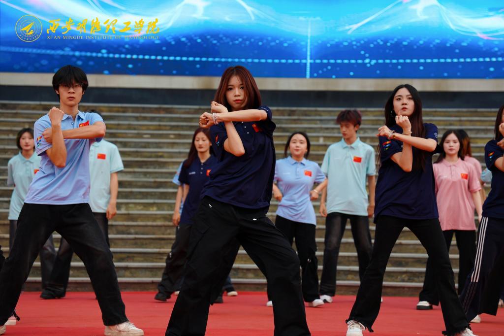 大学生艺术团开场舞蹈《热血出征—舞韵飞扬》,以独特的创意和精湛的技艺展现了青春的活力与激情,为出征仪式拉开序幕。