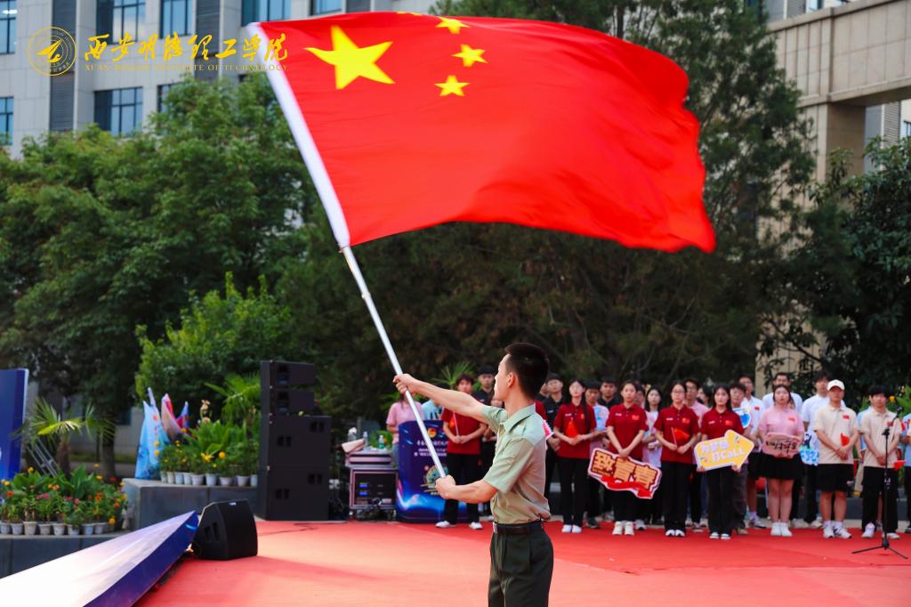 迎国旗、奏唱国歌的庄严仪式令人心潮澎湃。国旗护卫队迈着整齐有力的步伐护送鲜艳的五星红旗入场。全场肃静,现场观众庄严肃立,面向国旗行注目礼,共同唱响国歌,歌声嘹亮,饱含着对伟大祖国的深情热爱和崇高敬意。