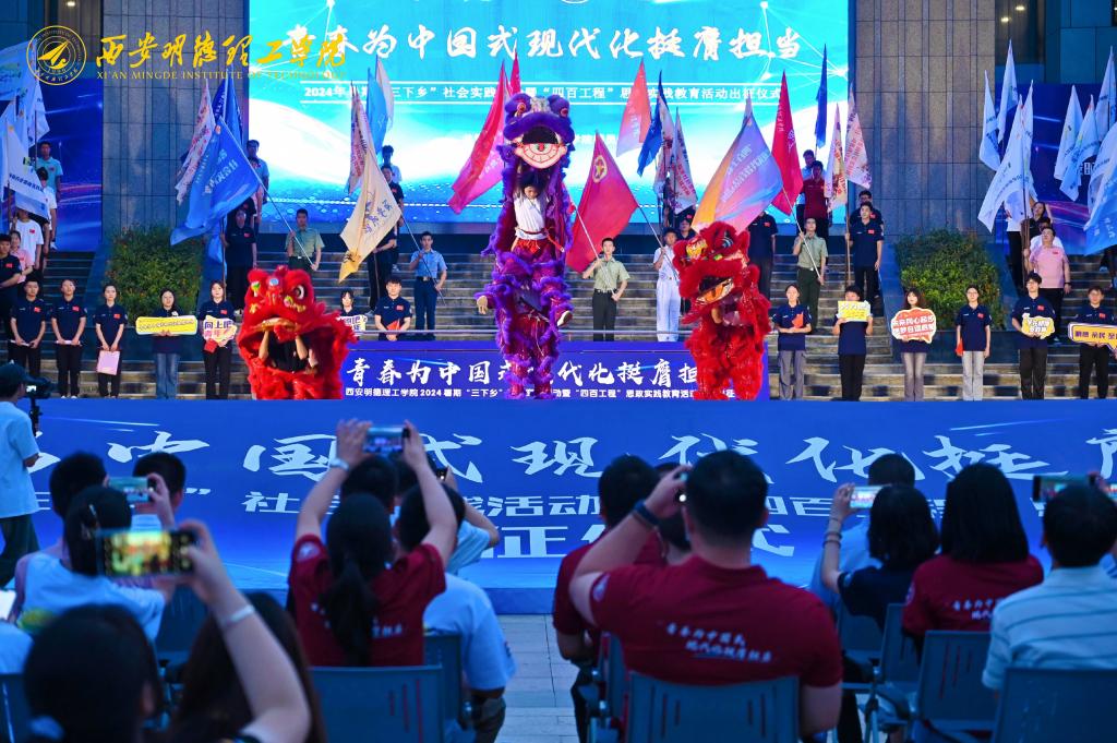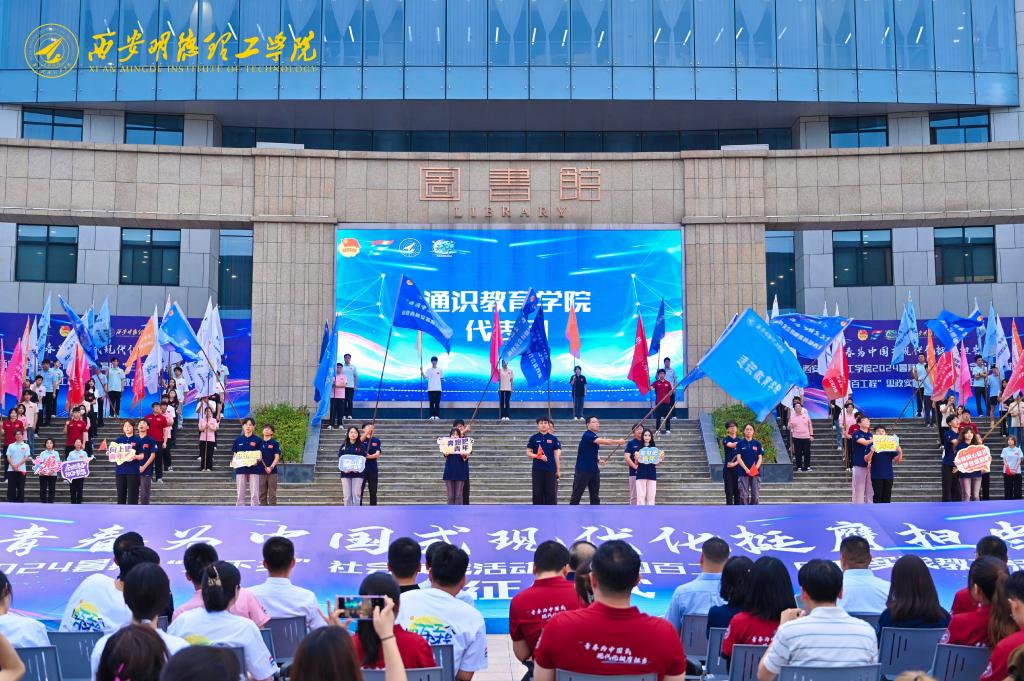 6月27日,学校在中心广场隆重举行2024年暑期“三下乡”社会实践活动暨“四百工程”思政实践教育活动出征仪式。学校校长王志刚,副校长白秦川、朱延波、刘星、陈鹏、王斌宁,各单位负责人,全体社会实践指导教师及2000余名学生志愿者参加出征仪式。