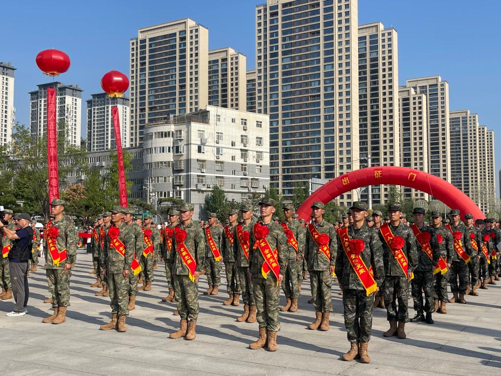 一身戎装酬壮志,热血男儿踏征程。开元11名经过严格选拔的新兵们身着迷彩服,军姿挺拔,胸佩光荣花,整装待发!