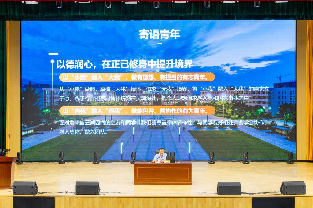 刘星在主持时要求,马川鑫书记今天讲授的入学教育课程是一次思想淬炼和精神洗礼,全体新生要认真体悟蕴含其中的思想内涵,以明德优秀师生、校友为榜样,把自身发展融入到党和人民事业之中,不负时代、不负韶华,在推进强国建设、民族复兴伟业中展现青春作为、贡献青春力量,奋力书写绚丽多彩的青春篇章。