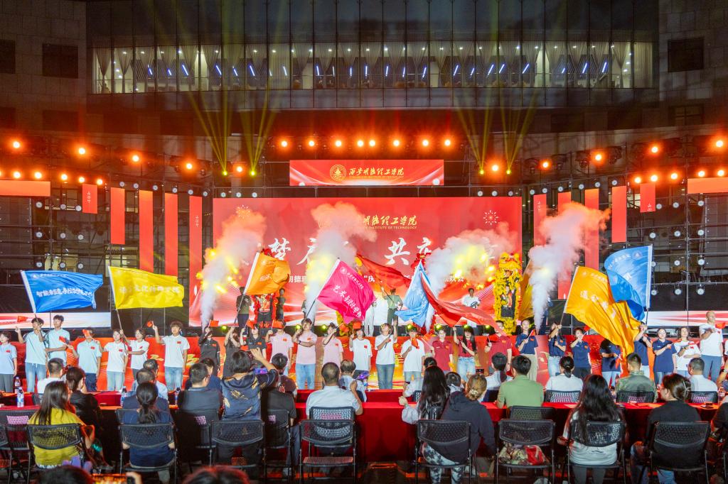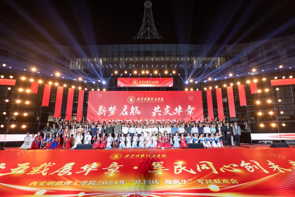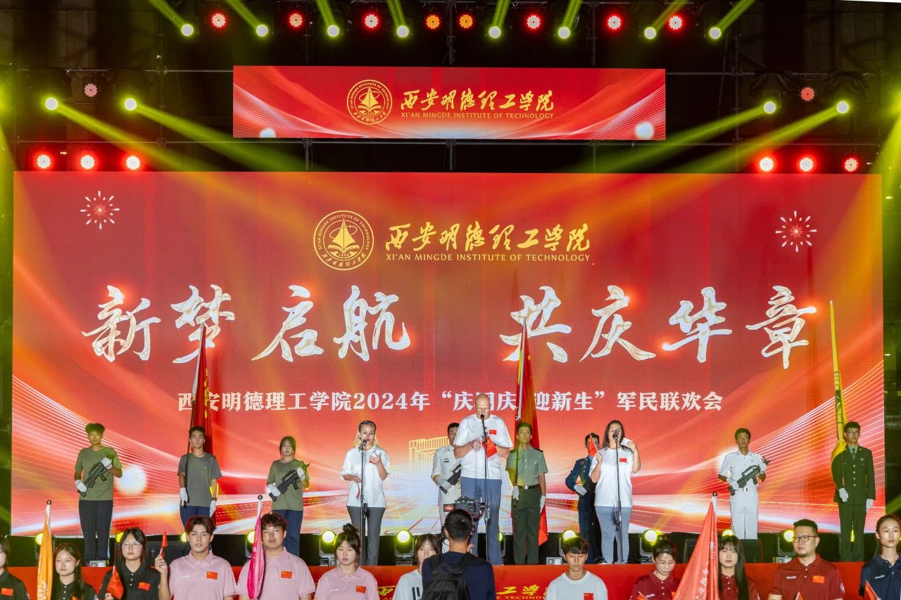 9月26日晚,“新梦启航·共庆华章”学校2024年“庆国庆·迎新生”军民联欢会在中心广场隆重举行。明德源教育集团助理总裁兼常务副总裁、学校副董事长张琳,校长王志刚、党委书记马川鑫、明德源教育集团财务总监田雪,2024级学生军训团团长张军闯、参谋长豆力强,学校党委副书记、副校长、纪委书记白秦川,副校长朱延波,党委副书记、副校长刘星,副校长陈鹏、副校长王斌宁、财务总监马晓军出席大会。金叶科教集团、明德源教育集团部门负责人、学校二级学院领导、职能部门、教辅单位领导参加活动。
