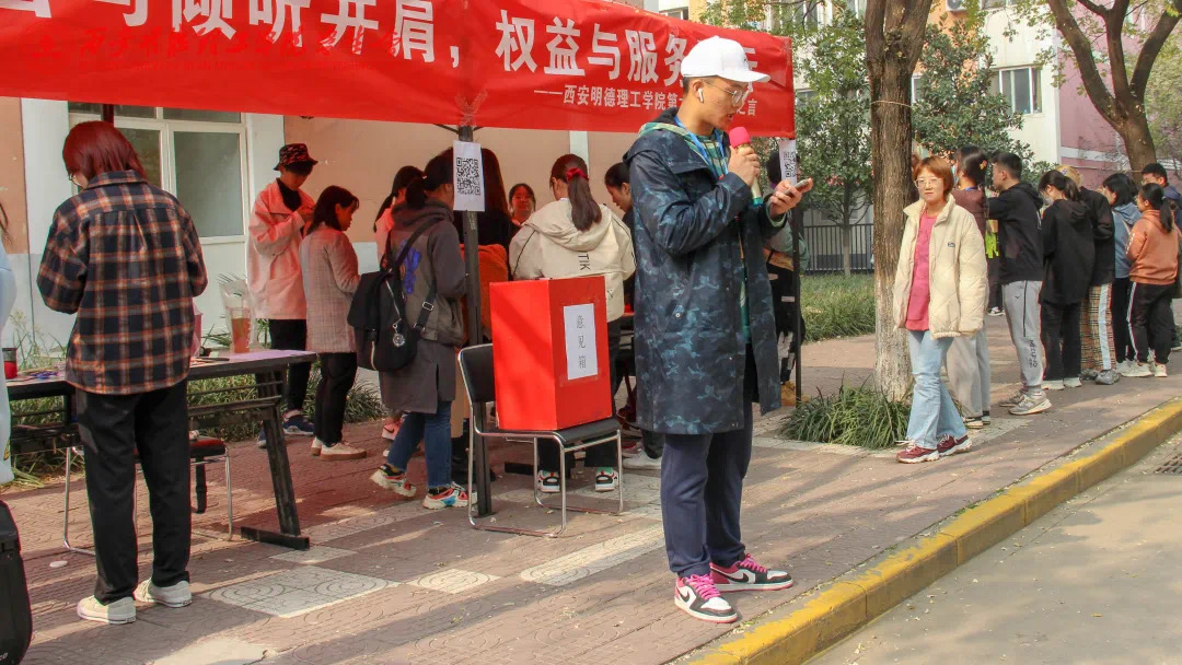 谏言与倾听并肩,权益与服务同行。活动以留言的形式收集同学们对于校园建设的建议,同学可以将对学校建议和意见写在便利贴上,也可以扫码进行线上填写,最终由学生会权益服务部进行收集整理,及时联系学校相关部门,解决问题。
