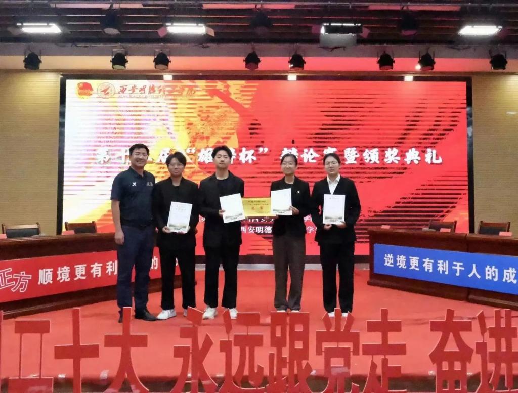 最终,智能制造与控制技术学院获得冠军,语言文化传播学院获得亚军,高等职业技术学院获得季军,反方三辩郭可盈同学被评为“最佳辩手”,童杨梓老师、刘雄老师、杨峰老师、曾凯老师为获奖辩手及队伍颁奖。