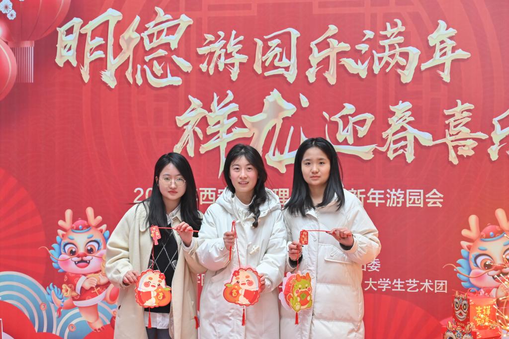“龙运当头”抽奖区设置主题限量版集“福”卡,同学们通过参加不同摊位活动游戏进行集“福”,集齐相应数量的“福”字可参与抽奖获得新年礼品。游园现场气氛热烈,充满欢声笑语。