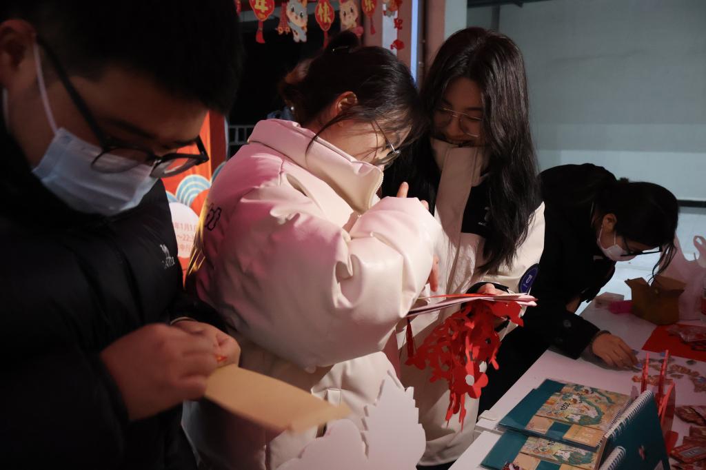 “八面灵龙”极具国风韵味的书法、灯笼、剪纸、新年福签diy手作区,吸引许多同学们参与,动手制作新年手工,陶冶情操的同时表达了自己最真挚的祝福。