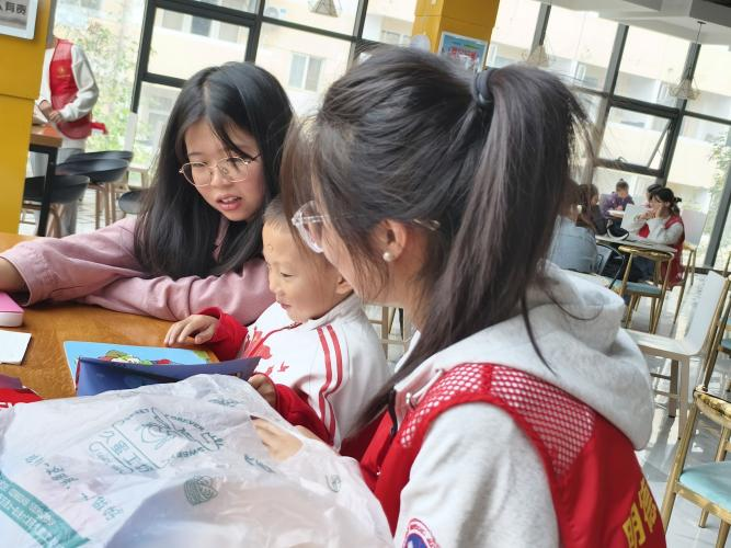 大家一同见证这份美好,期待在志愿者的引领下,每一个小朋友都能找到属于自己的光芒,在知识的海洋里遨游与探索。