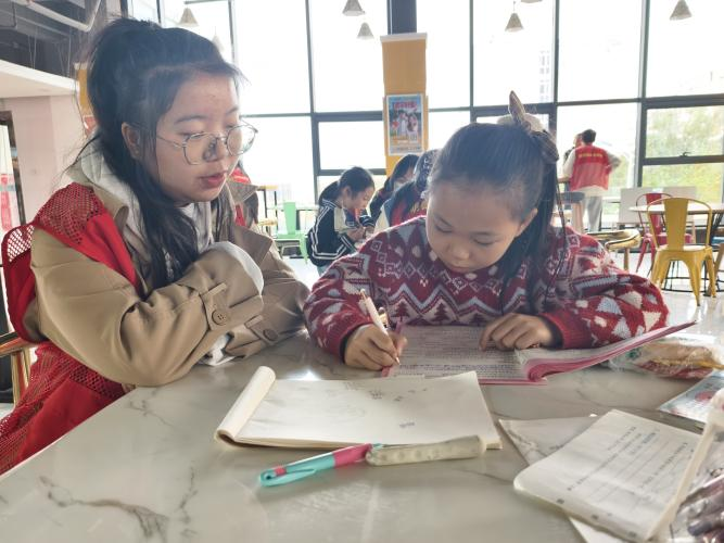 学业辅导环节中,志愿者耐心且细致地解答孩子们的疑惑,借助生动的例子带领孩子们探索知识的海洋。不仅要教会他们如何解题,更为重要的是为了激发孩子们对学习的热爱与好奇心。这不仅仅是一次简单的辅导,更是一场心灵的交流,让食堂阿姨们深感欣慰,也让孩子们的童年变得更加丰富多彩。