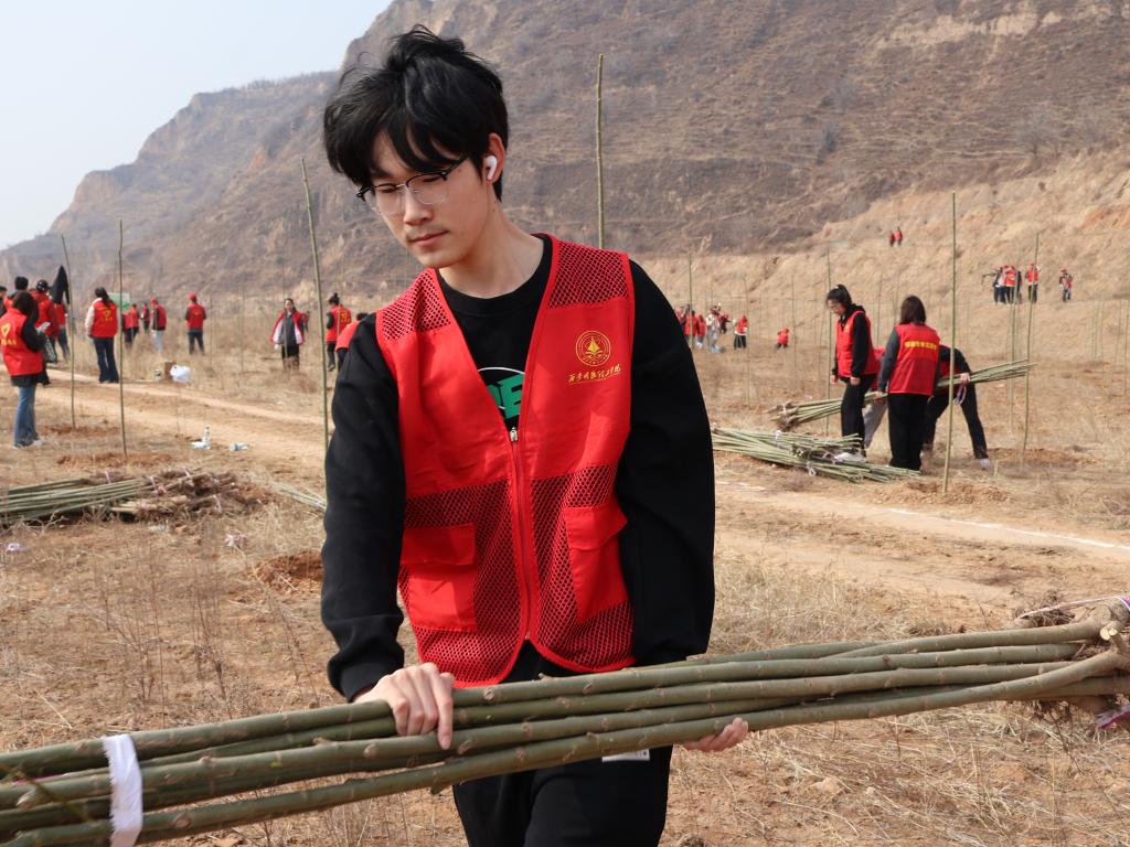 活动当日,春光明媚,黄河岸边红旗招展。学校志愿者们身着统一服装,与来自沿黄九省区的青年代表共同组成植树队伍。在林业技术人员的指导下,志愿者们分工协作,挥锹铲土、扶苗培土、提水浇灌,每一道工序都认真细致。经过数小时的努力,百余株白皮松、侧柏树苗在黄河畔“安家落户”,为沿岸增添了一片新绿。志愿者张勃涛表示:“亲手种下树苗,让我深刻体会到生态保护需要每个人的参与。作为青年学子,我们更应争做生态文明建设的传播者和实践者。”