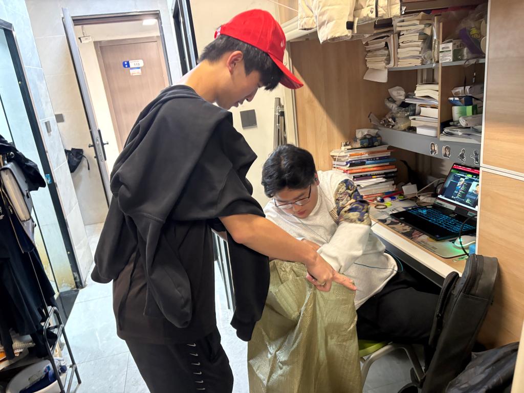 活动伊始,志愿者们头戴统一的帽子,精神饱满地在中心广场前集合,并前往同学们的宿舍楼,耐心地询问大家有没有不需要的废瓶子。他们穿梭于宿舍之间,认真搜寻着每一个角落,不放过任何一个可以回收的瓶子。
