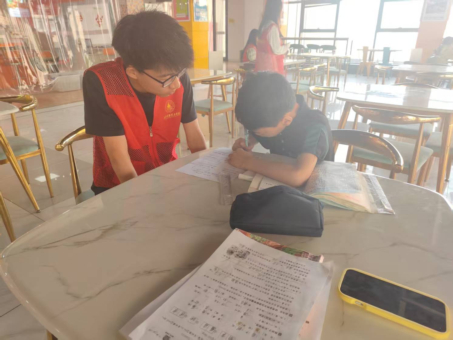 2025年4月26日,开元青年志愿者服务团在餐厅二楼开启了第六次校内务工子女义务家教活动。志愿者们化身光的使者,凭借知识发出的点点光线,照耀祖国的花朵,这不仅是温暖的传递,更是志愿精神的一代代传承。