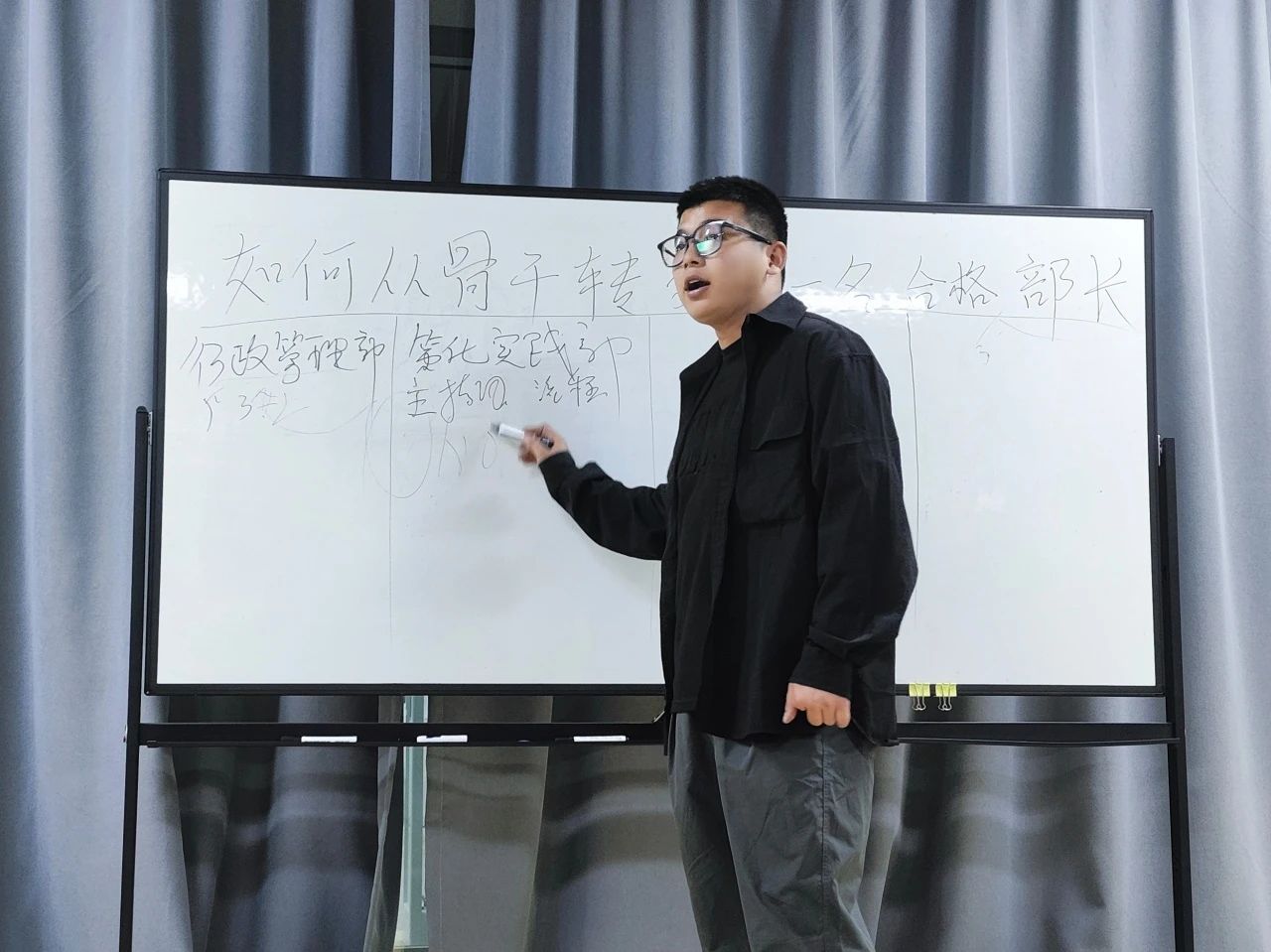 白佩鑫以如何从一名骨干转为合格的部长这一问题拉开了本次活动的序幕,同学们各抒己见,认为合格的部长应该有组织能力和协调能力,要以身作则,具有与其他成员和平相处的能力。然后,白佩鑫详细讲解了第六届思创协会部门的更新调整及目的。他指出了部门名称的变化,4个职能部门分别为新闻传媒部、策划实践部、行政管理部、项目孵化部。同时对各部门所负责任务进行了明确分析。随着协会不断发展壮大,为了更好地适应新形势、新任务,对各部门进行整合优化可以更好的提高工作效率和创新能力。