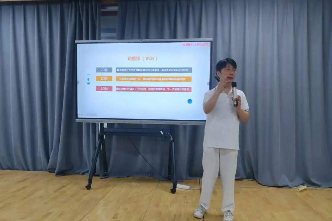 活动中,许培讲解市场分析、商业模式、财务规划等模块的撰写技巧。他特别提醒,数据来源要权威,风险分析需客观,用户调研等实证材料增强说服力。针对路演PPT,强调应善用信息图表简化复杂数据,用动态流程图展示技术路径,每页PPT只传递一个核心观点。用通俗易懂的举例给学生们讲解出简约的重要性。
