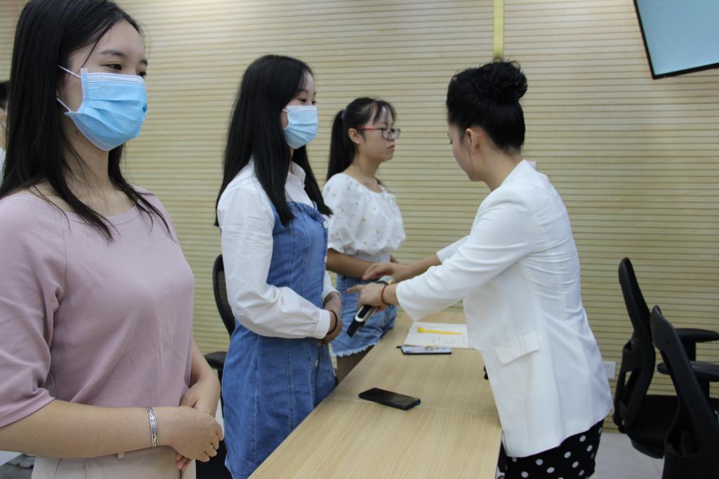 培训会上,马盼老师结合学校的特点,从服务意识和心态,以及如何与家长、新生沟通等方面,向大家详细讲解了服务礼仪知识,并通过实例讲解、实操演练、分组游戏等方式活跃课堂气氛,使大家在愉快的氛围中受到了教育,掌握了规范的服务礼仪。最后,她向全体志愿者提出要求,希望同学们发扬志愿服务精神,展现良好的精神风貌,积极传递正能量,以饱满的热情为2020级新同学服务。