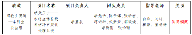 近日,由教育部等12个中央部委和重庆市人民政府共同主办,重庆大学承办的第八届中国国际“互联网+”大学生创新创业大赛全国总决赛顺利落下帷幕。开元“朗天卫士——农村生活垃圾自洁净自焚化处理系统”项目团队获得国赛铜奖,实现历史性突破,平陕西民办高校最好成绩。