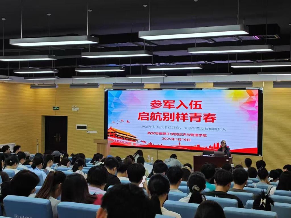 为贯彻落实国家征兵政策,提高学院征兵工作的质量和效率,充分激发广大适龄青年的参军热情,引导广大青年投身军营。经济与管理学院于5月16日下午在建德楼201举办“参军入伍,启航别样青春”毕业生入伍宣讲动员会。学院征兵专干吕盼担任主讲老师,2025届毕业生参加了会议。