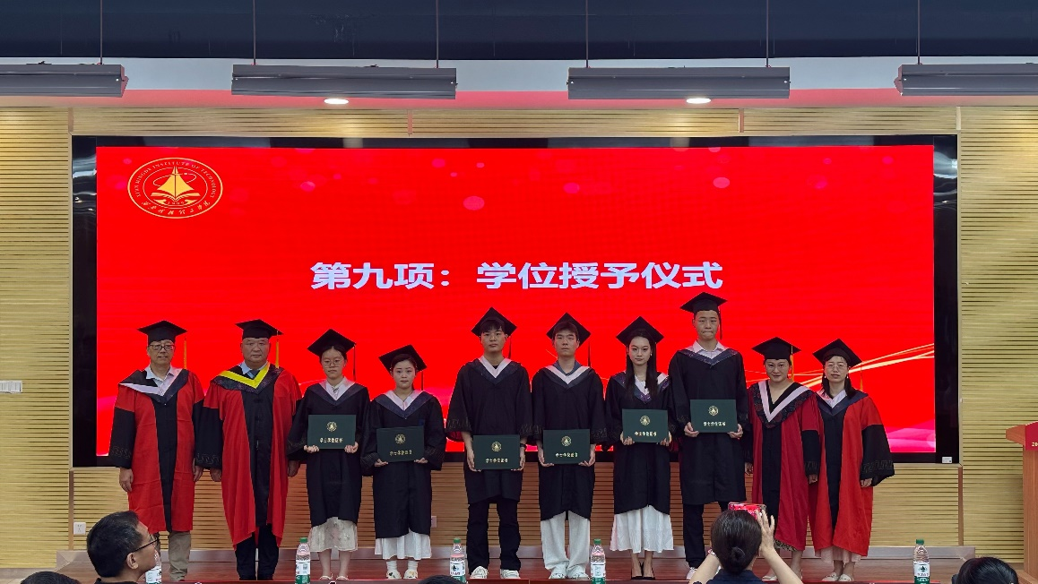 随后,与会校院领导、教授代表为现场的毕业生逐一拨穗正冠、颁发学位证书,合影留念。经济与管理学院2025届毕业生们带着母校的祝福,即将踏上新征程,书写人生新篇章。
