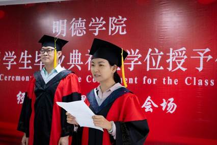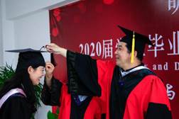 随后,王副院长对经济与管理学院2020届全体毕业生们顺利完成学业表示衷心的祝贺,并宣布经济与管理学院2020届毕业生学位授予仪式正式开始。郭院长与教师代表为经管院2020届优秀毕业生们拨穗正冠并授学士学位证。