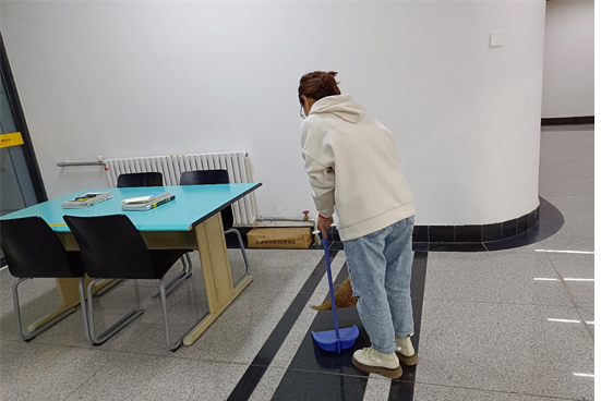 义务劳动,服务群众。为了给来开元参加国家医师资格综合考试的考生营造一个干净整洁的考试环境,本期培训班部分小组学员参与考场消杀、考场分布标识牌的张贴工作。部分小组学员自发的进行校园环境美化活动,他们对学校操场、教学区路面、图书馆、育德楼、立德楼教室内部卫生进行打扫,为师生营造良好的学习和工作环境。