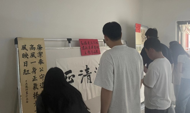 展览期间,学院师生们前往学习欣赏,在一张张意蕴深远的画作中体悟廉洁寓意的深远,在一幅幅苍劲有力的书法作品里感受廉洁警句的力量,大家纷纷表示这些作品集思想性和艺术性于一体,多角度、深层次、全方位地将廉洁文化与中华优秀传统文化高度融合,形式多样,令人印象深刻。引导师生涵养廉洁自律道德操守,严守廉洁从教、廉洁从学底线,形成良好的育人环境。