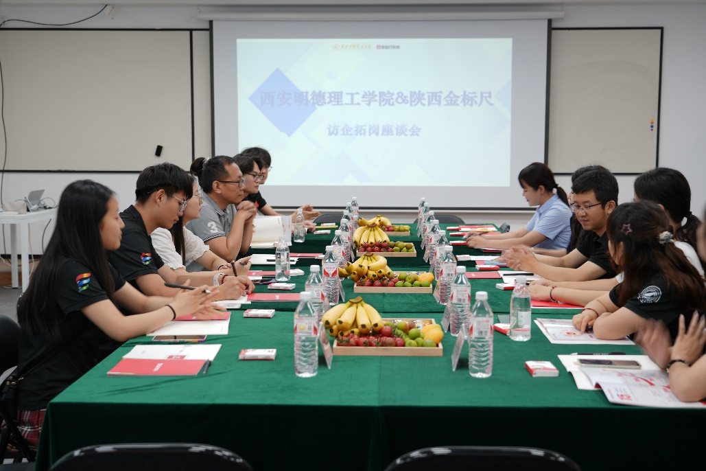 在陕西金标尺教育科技有限公司调研时,刘瑶佳从发展历程、业务范围和取得业绩等方面介绍了企业概况,倪星星介绍了学院2025届毕业生信息,双方就人才需求、校企合作进行深入交流。企业向学院赠送了30册考公考编相关图书,以支持学院的教学和科研工作。