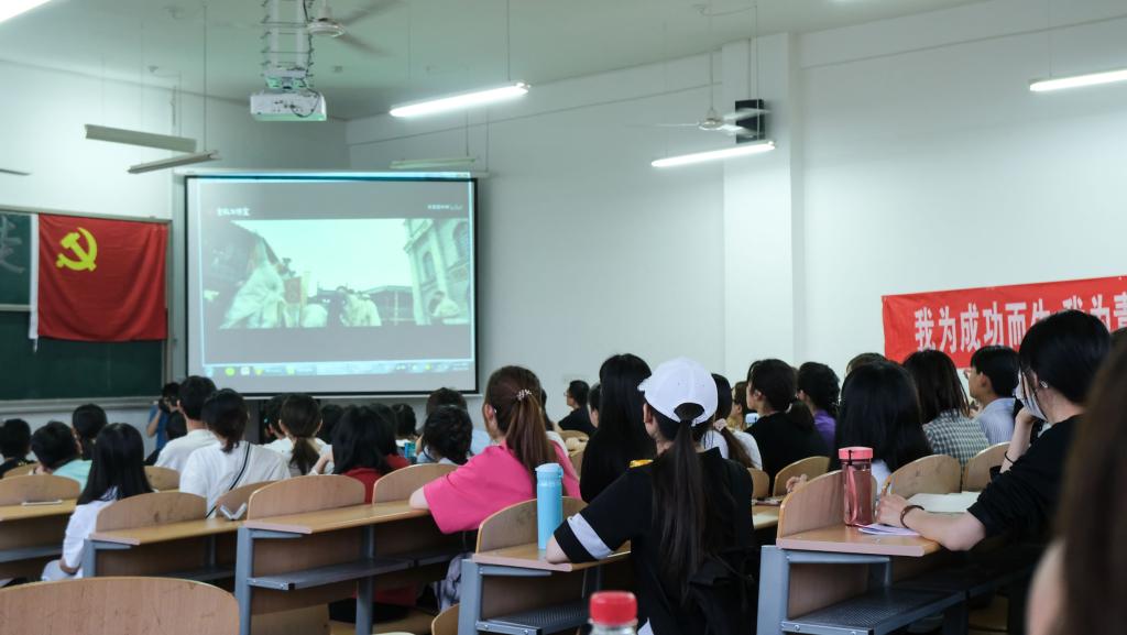 朱妍同志首先带领学生回顾了中国共产党100年的发展历程,引导他们从党史中汲取智慧和力量,在新的征途中奋发向上。接着,共同观看了《重逢》纪录片,深刻阐述了共产党人自主自强的奋斗精神和拼搏拼命的献身精神,最后,通过一首《追梦赤子心》,鼓励学生继续前进,勇于拼搏,敢于追梦。