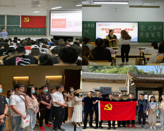 各支部采取线上线下相结合、理论学习与实践教学相结合的形式,掀起党史学习教育热潮,做到“规定动作”做实,“自选动作”出彩。在党史学习教育中,学院党委理论学习中心组每月进行一次集中学习和交流发言;各党支部在做好集中学习基础上,通过“三会一课”开展“铭党史、守初心、担使命”和“知史爱党、以史明志、明史崇德、学史奋进”等主题党日活动及专题研讨。全体师生党员利用网络学习资源,共同观看教育部“同上‘四史’思政大课”4次;学习中央党校(国家行政学院)网络课程中共党史专题讲座4次。学院党委邀请学校党史学习教育宣讲团吴长川同志为师生做题为“马克思主义中国化的百年历程”专题辅导报告;学生支部精心组织开展“学党史、知党情、跟党走”党史知识竞赛、“学党史,强信念,跟党走”信仰公开课。充分利用校图书馆及交大西迁博物馆等校内外红色资源积极开展党史学习教育现场教学。通过多种形式使党史学习教育扎实开展,引导广大师生党员在学习党的百年奋斗历程中,坚定理想信念,传承红色基因,践行初心使命,弘扬共产党员爱国奋斗精神。