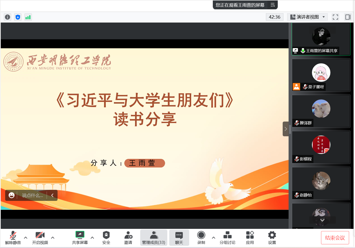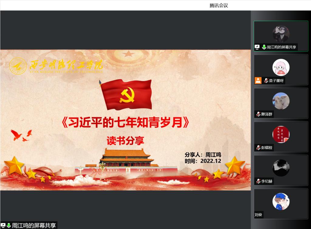 为不断深化对青年学生党员的思想政治引领,引导广大青年厚植爱党、爱国、爱社会主义的情感,大力营造爱读书、读好书、善读书的浓厚氛围。经济与管理学院学生第六党支部于12月17日下午举办“品读经典、锤炼党性”主题党日读书分享会,本次活动通过腾讯会议形式开展,支部全体党员参加了读书分享,分享会由支部书记马子墨主持。