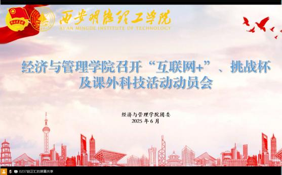 为激发同学们的学术科研热情,提高创新实践能力,助力高素质应用型人才培养,6月30日,经济与管理学院通过线上会议的方式召开“互联网+”、挑战杯及课外科技活动动员会,会议由学院团委书记冯莹莹主持,学院各年级100余名学生参加。