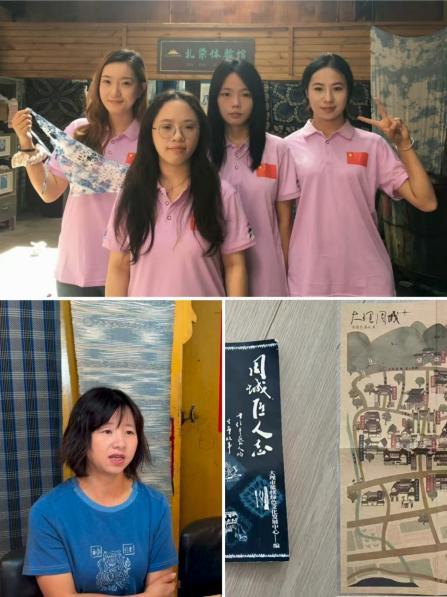 团队成员在大理市蓝绪文化发展有限责任公司调研期间,创始人张翰敏讲述了自己的创业故事、蓝续的发展现状、生产技艺、产业瓶颈和未来目标以及人才招募情况,向团队成员赠送了其团队亲自设计的《大理周城村地图》和编写的《周城匠人志》以作留念。在蓝绪调研结束后,团队成员翻阅图志、深入古镇街道,通过观察非遗产品种类、走访店铺了解销售情况等方式,对大理非遗产业发展情况有了更进一步的了解。