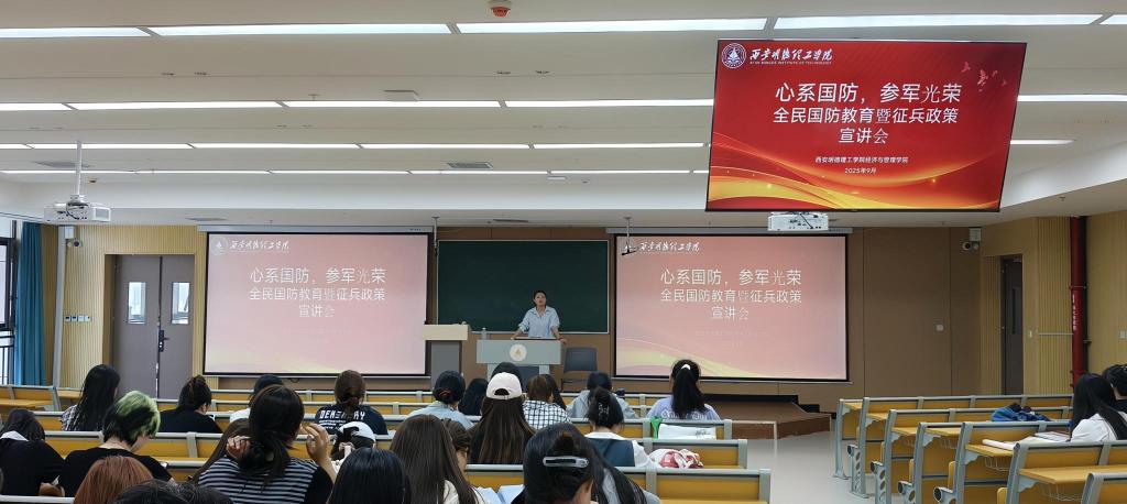 为深入贯彻落实国家征兵政策,加强全民国防教育,激发广大青年学子参军报国热情,9月15日,经济与管理学院在8号教学楼401教室举办“心系国防,参军光荣”全民国防教育暨征兵政策宣讲会。学院征兵专干吕盼担任主讲老师,2025级专升本学生参加了会议。