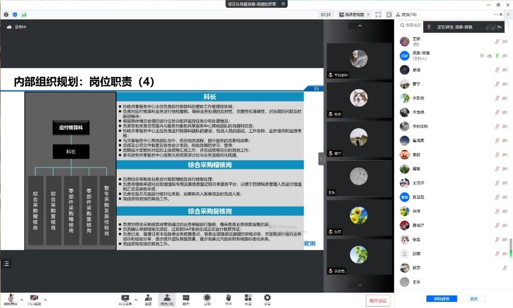 2022年7月25日早上9:00,会计学专业负责人许萍老师邀请浪潮集团专业培训师对授课教师进行线上培训,本次培训由本专业全体教师参加,培训共两个模块,包括财务共享沙盘和财务共享软件,在专业培训师的带领下,通过铸远汽车集团案例的引入,来探讨企业经济业务中存在的问题,然后从战略定位、组织人力设计、费用报销业务、薪资等10个业务进行入手,来分析产生问题的原因,进而形成财务共享的运营体系,进行沙盘演示,来解决对应的问题。整个培训过程,各位老师参与度较高,气氛热烈。