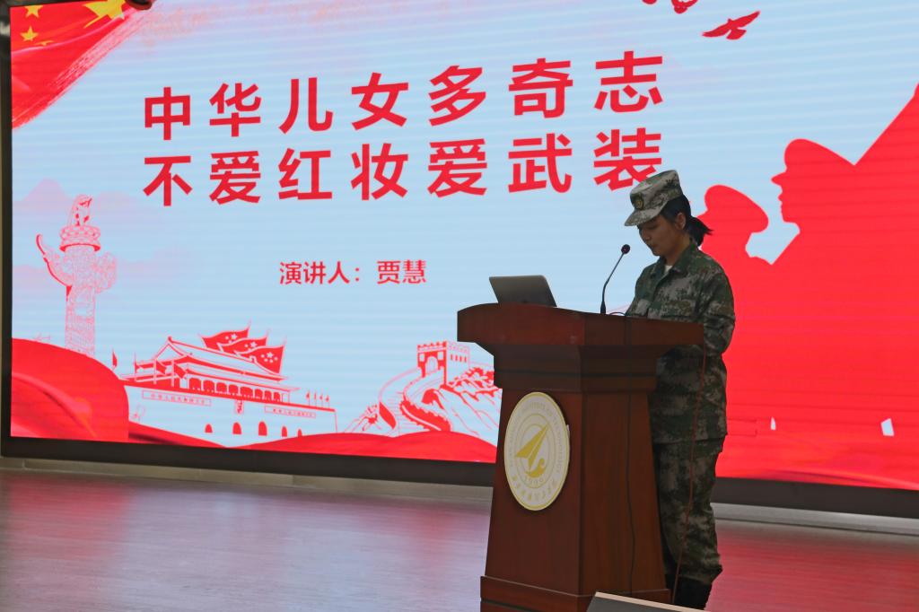 学校退役士兵代表讲述了自己为什么去当兵、当兵都学到了什么、退役复学后怎么度过校园生活。我院陈俊霖同学讲述自己如何成为训练标兵,在高强度训练条件下自己如何进步;高少天同学讲述了自己从一名迷茫的大一学生转变为现在优秀的自己以及参加朱日和阅兵的经历。艺术与设计学院姚驰结合自己的参军经历,从感恩父母,珍惜当下两个角度分享了自己的成长历程;张宇在部队为了训练成绩提高,3个月减掉80斤;贾慧做为一名女兵讲述了自己丰富多彩的军旅生涯。