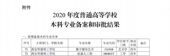 近日,省教育厅印发了《陕西省教育厅关于公布2020年度普通高等学校本科专业备案和审批结果的通知》,我院申报的“机器人工程”专业正式获教育部备案批准设立。