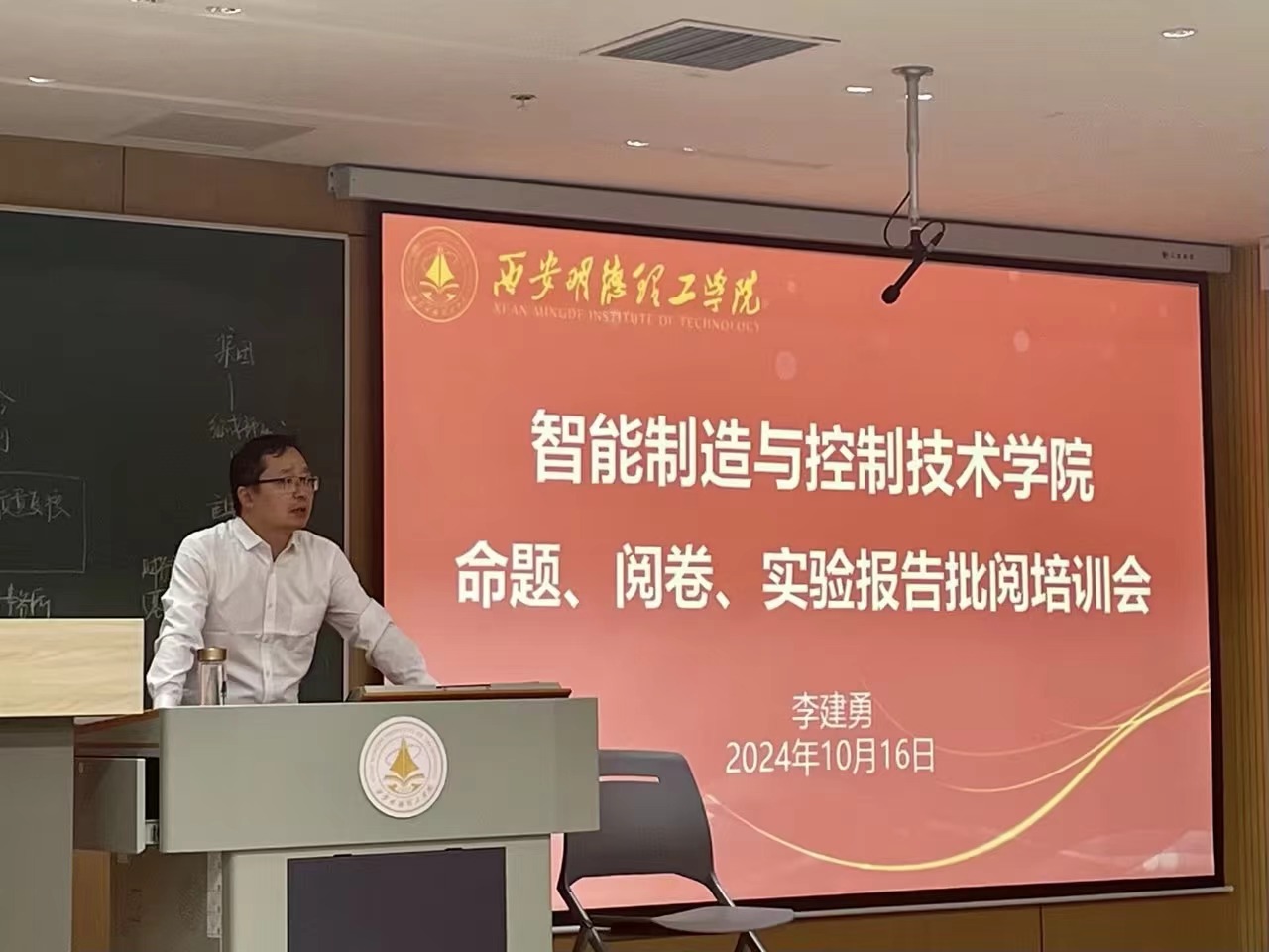 2024年10月16日,智能制造与控制技术学院于7#教学楼501教室举办命题、阅卷、实验报告批阅培训会”,培训由学院副院长李建勇主持,部分新入职教师参加培训。培训旨在加强教学管理和教学质量监控,确保教学环节规范化,提高教师的教学能力和水平。
