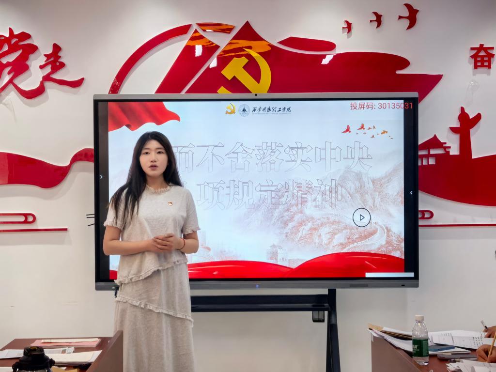 周佳琪结合自身工作实际,围绕中央八项规定精神的历史背景、核心要义及实践要求展开讲解,强调作风建设是全面从严治党的关键环节,党员需以“严”的标准践行初心使命,坚决反对形式主义、官僚主义等不良风气。