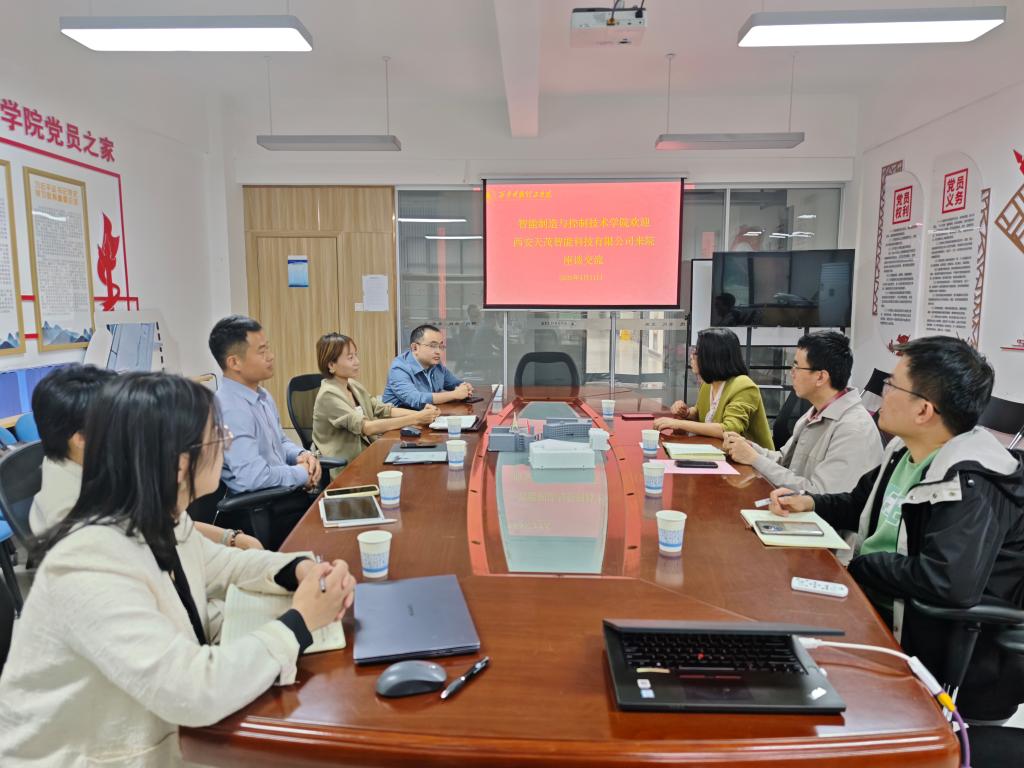 陈雪彬代表学院对西安天茂智能科技有限公司一行到访表示热烈欢迎,并学校和学院的基本情况、办学特色以及与西安天茂智能科技有限公司的合作意向做了介绍。天茂智能科技有限公司项目管理部经理王亚娟对公司基本情况和核心业务做了介绍,分享了与国内其他高校的合作经验。双方就合作意向进行了深入交流,在课程建设、实验室建设、师生培训、低空经济人才培养方面达成了初步共识。