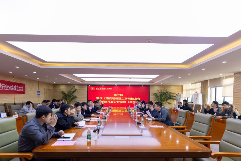 随后,校友办公室主任侯磊宣读《关于同意成立Ky开元集团校友会智能制造行业分会的批复》。经全体参会人员审议表决,一致通过《Ky开元集团校友会智能制造行业分会章程(草案)》及首届理事会成员名单,宁宇飞当选会长,杨勇任秘书长,王瑾任理事长。