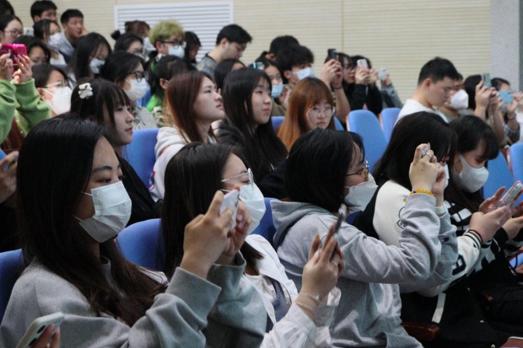 孙静所长幽默风趣的话语,详实耐心的实例解析,让广大师生在生动活跃的氛围中学习到了如何识别防范电信诈骗以及上当后的补救措施。同时,他向同学们普及了96110 反电信网络诈骗预警劝阻专线服务功能,并再次带领同学们巩固防诈骗“八个凡是”口诀,引导同学们把反诈贴士、反诈口诀牢记于心,广泛宣传,进一步构筑校园反诈的“防骗墙”。讲座最后,孙静所长鼓励同学们加入反诈志愿队伍,希望同学们为预防电信网络诈骗贡献自己的一份力量。现场爆发出热烈掌声。