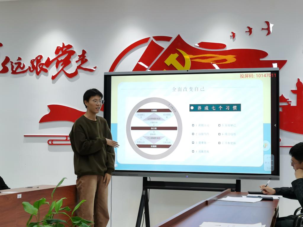 为深入学习贯彻习近平新时代中国特色社会主义思想和党的二十大精神,深入贯彻落实习近平总书记关于教育的重要论述和全国教育大会精神,进一步建设学习型党支部。12月14日下午,智能制造与控制技术学院学生第一党支部在明志楼北108党群服务中心开展第二期“学在明德•读书分享”主题党日活动,活动由支部书记孙一辰主持。