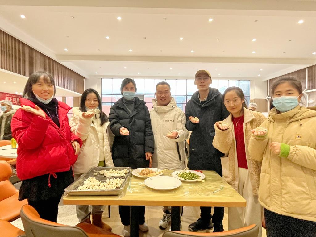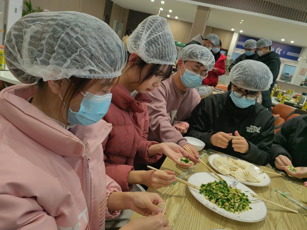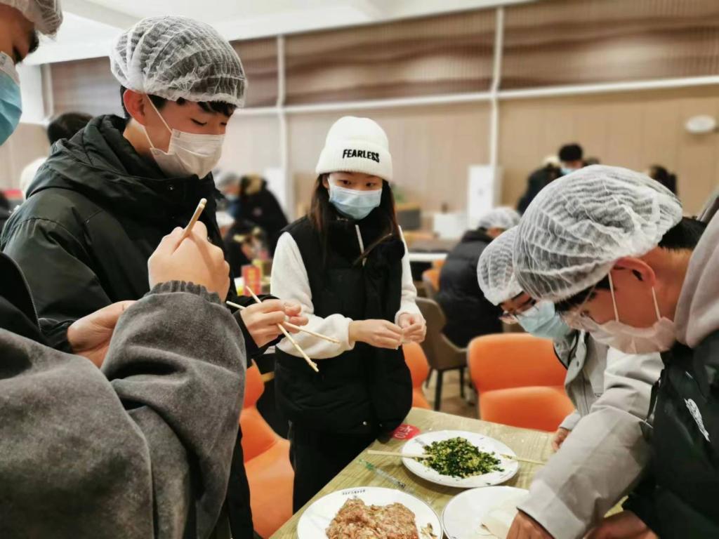 活动现场,食堂工作人员为大家准备了饺子皮和饺子馅。大家分工协作、井然有序,各位老师也参与其中,和同学们一起包饺子。经过大家的不懈努力,一盘盘热气腾腾、裹满爱意的饺子端上饭桌。饺子的热气在空气中蔓延,洋溢在每一位同学的心里,是深冬时刻的温暖与浓情。大家边吃边谈,气氛非常活跃,感受着劳动带给大家的快乐。