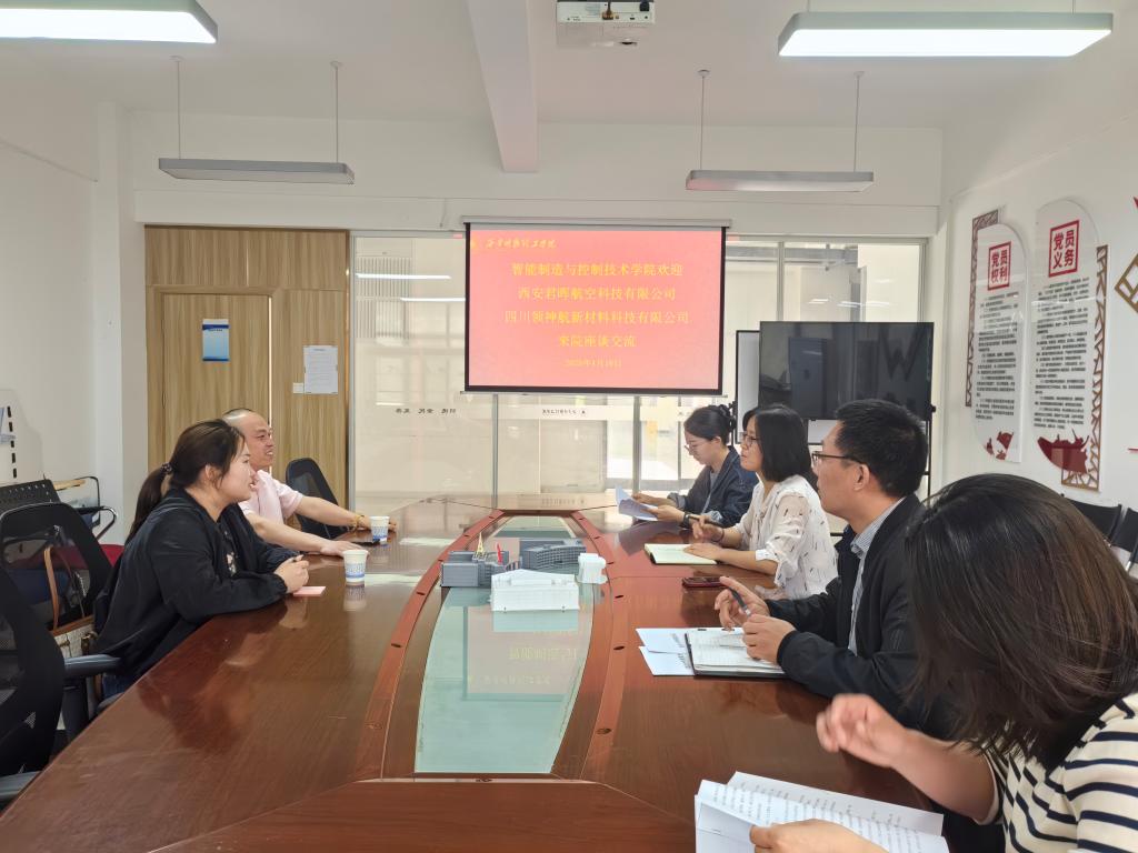 4月16日,智能制造与控制技术学院与西安君晖航空科技有限公司、四川领神航新材料科技有限公司在明志楼北304会议室召开校企合作交流座谈,共同探讨企业招聘、人才需求与人才培养等议题。西安君晖航空科技有限公司科研部部长胡昕彤、四川领神航新材料科技有限公司董事长唐小平,智能制造与控制技术学院科研副院长李郁,专业负责人朱伟、刘雪梅、刘晓春等参加座谈会。